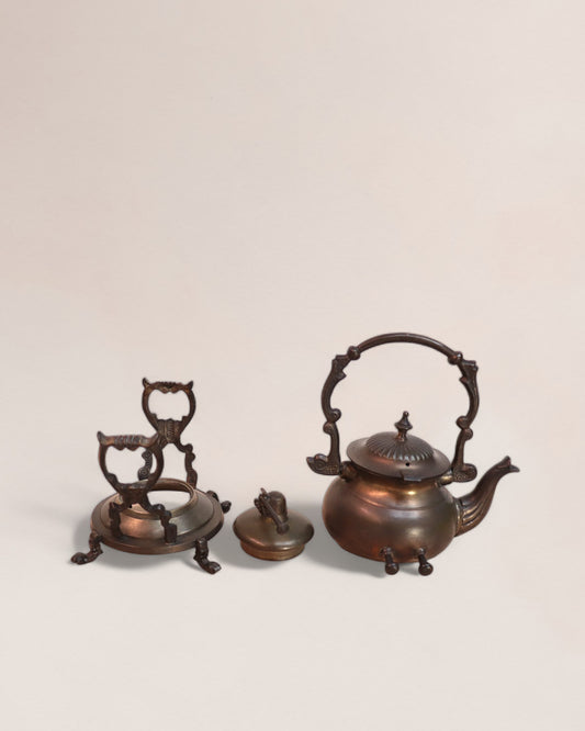 Vintage Mid-20th Century Brass Tilting Hinged Lid Tea Pot Set