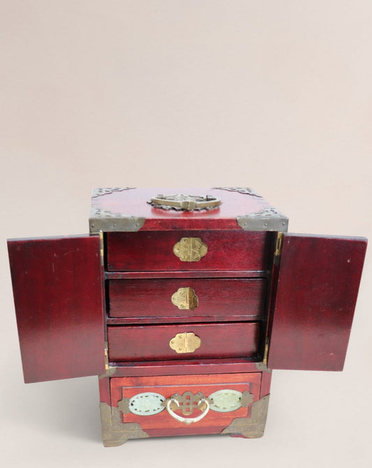 Vintage Mid 20th Century Chinese Rosewood and Jade Jewelry Box